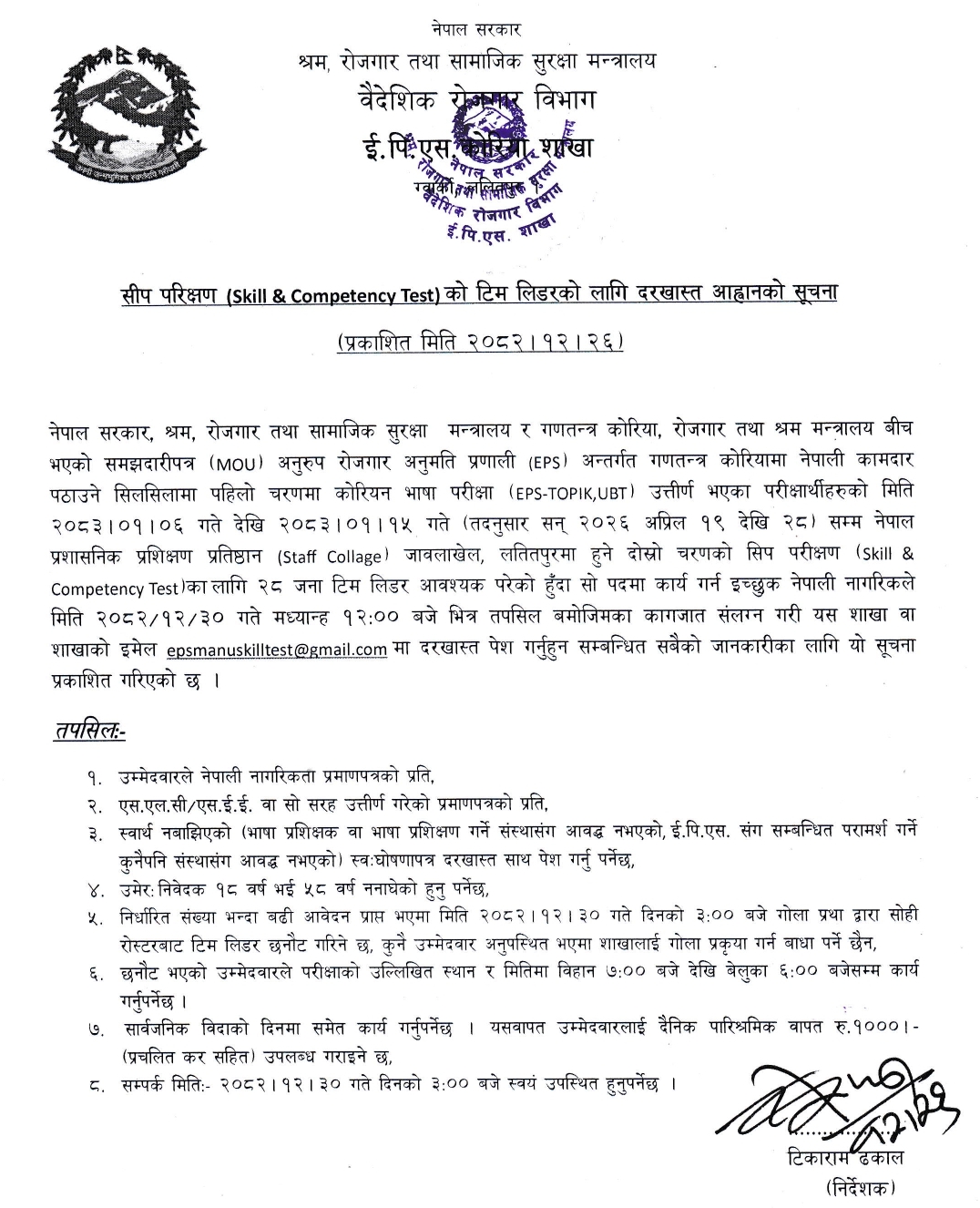 सन् २०२५ को कृषि तथा पशुपालन (Agriculture & Livestocks) क्षेत्र तर्फको दोश्रो चरणको सीप परिक्षण (EPS-TOPIK-2025, UBT) Skill & Competency Test को नतिजा प्रकाशन सम्बन्धी सूचना !