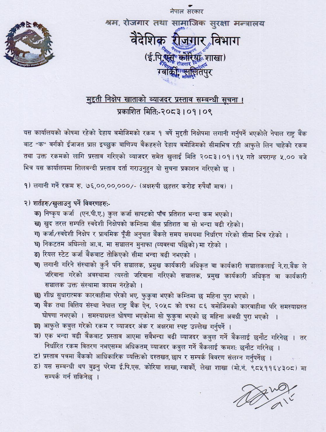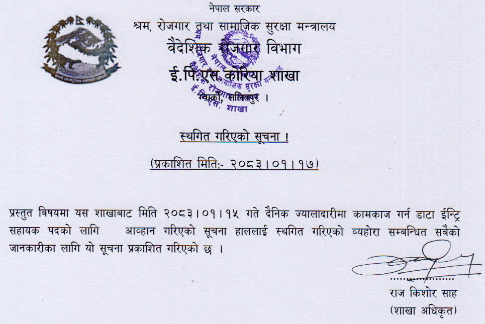 नेपालको श्रम, रोजगार तथा सामाजिक सुरक्षा मन्त्रालयका सचिव डा. दिपक काफ्ले नेतृत्वको ४ सदस्यीय प्रतिनिधिमण्डल र दक्षिण कोरियाको रोजगार तथा श्रम मन्त्रालयका डेपुटी मिनिस्टर श्री पिल हुन् सन् नेतृत्वको ५ सदस्यीय प्रतिनिधिमण्डलबीच जुड्ङ्गु, सिओलमा आज एक बैठक सम्पन्न भयो।